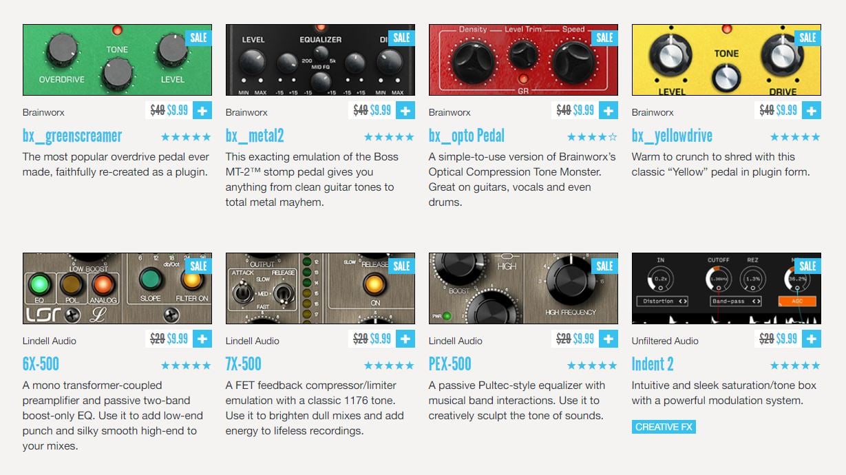 If you’re a sound designer, pick any Unfiltered Audio product, and you won’t be disappointed. If you want to expand your mixing arsenal, choose one of the Brainworx or SPL offerings. Guitarists have the most options, as there are dozens of guitar amps and stompboxes that cost less than $20.