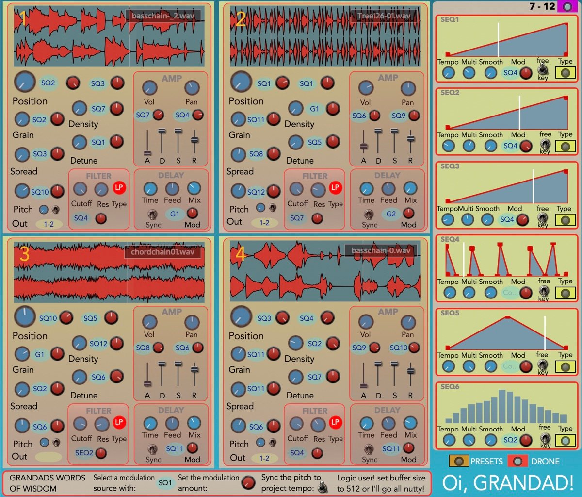 Oi, Grandad! is a four-voice granular synth for macOS only right now, although a Windows version may come in the future.