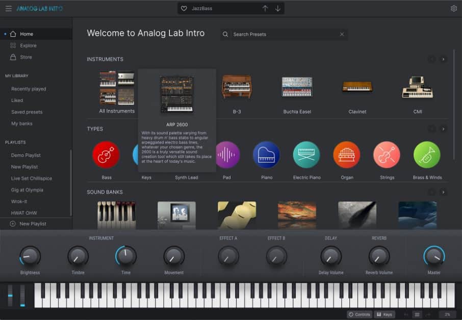 Analog Lab Intro contains 500 sounds curated from 28 different Arturia virtual instruments. The collection is typically bundled with various hardware products and software packages, but you can currently get it for free via Audio Plugin Deals.