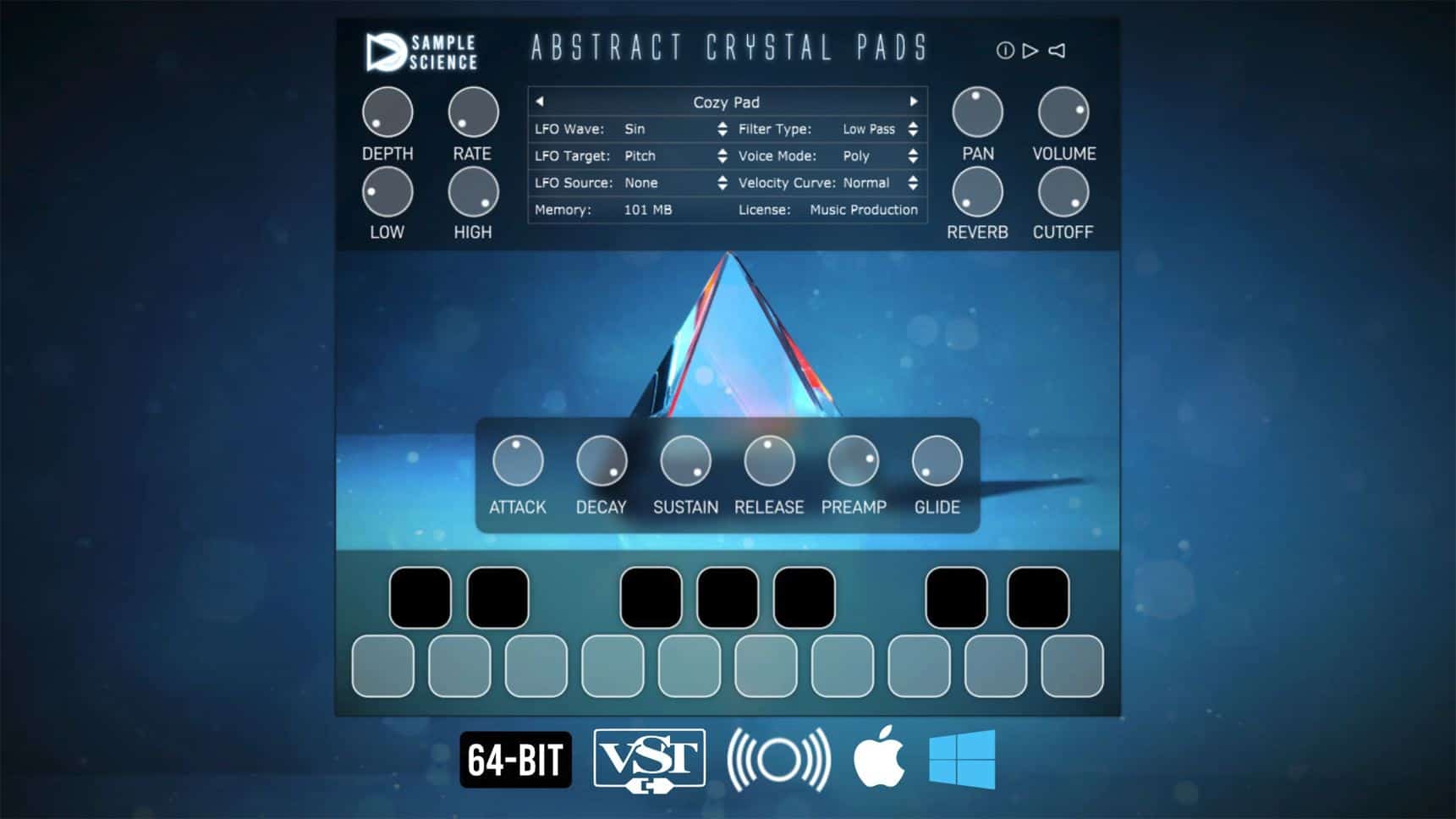 SampleScience has released a new VST plugin (also available as a sound library in multiple formats) called Abstract Crystal Pads, and it’s completely FREE!