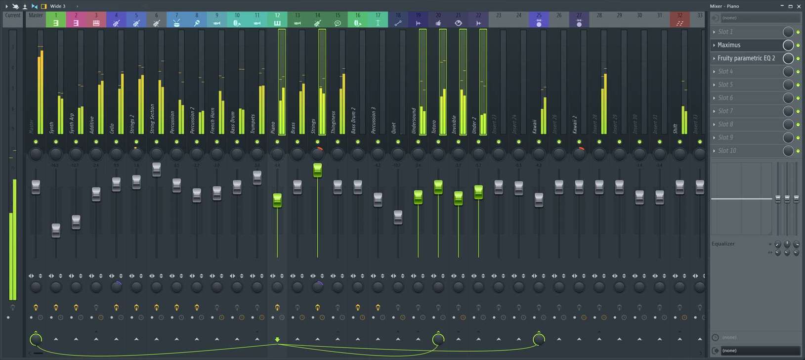 The slick mixer panel in FL Studio 12.