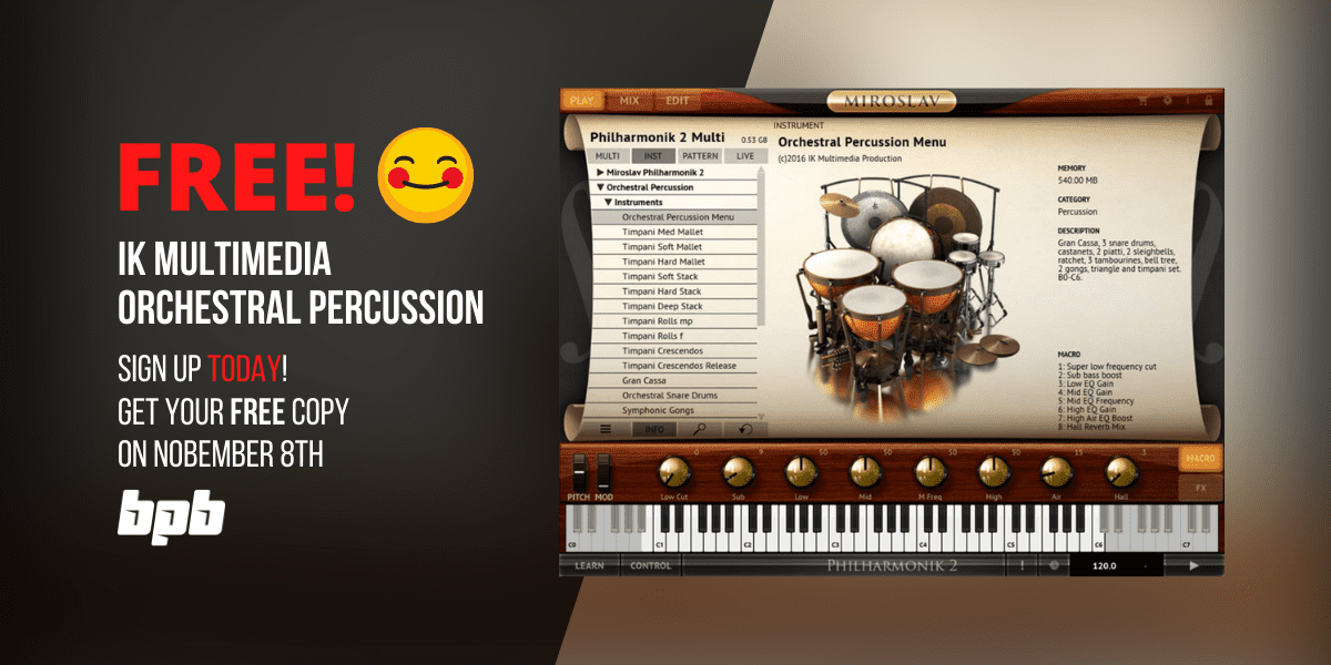 Sign up today to receive your free IK Multimedia Orchestral Percussion activation code on November 8th. 🥁