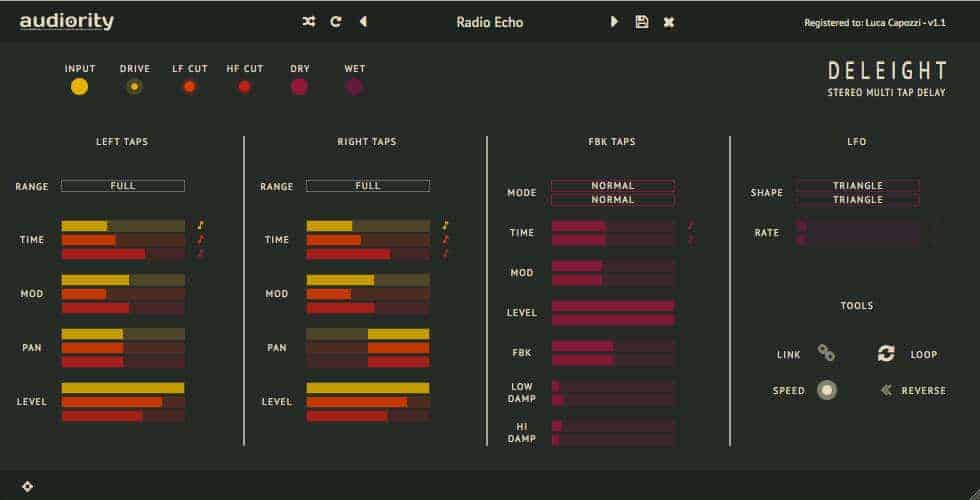 Deleight has almost everything one could possibly want in a multi-tap delay plugin, with exception of a few unnecessary bells and whistles that would probably just take up space and slow you down.