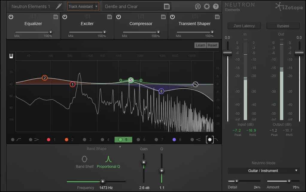 Even if you don’t plan on using the Track Assistant automation feature, Neutron Elements is still worth the download as a powerful yet easy to use channel strip plugin. It includes all the basic mixing tools conveniently packed in a nicely designed user interface. The equalizer is especially good, thanks to its transparent sound and a built-in spectrum analyzer.