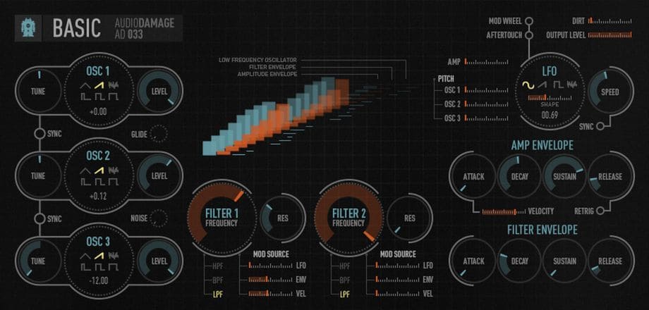 Basic is an interesting virtual analogue synthesizer (32-bit and 64-bit VST/AU plugin format for Windows and Mac OS) developed by Audio Damage. Priced at $39 and offered as a digital download on the developer’s website, this deceptively simple looking virtual instrument packs a rather characterful subtractive synthesis engine into a streamlined and easy to use package.