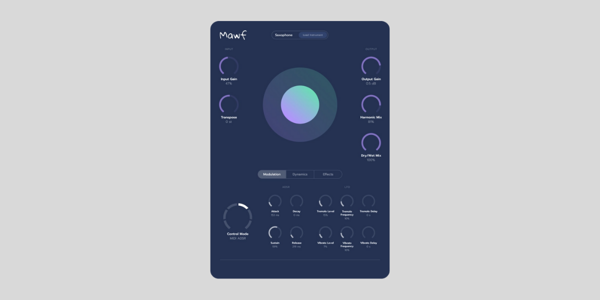 Mawf works in real-time to read incoming signals and generate a realistic instrument sound.