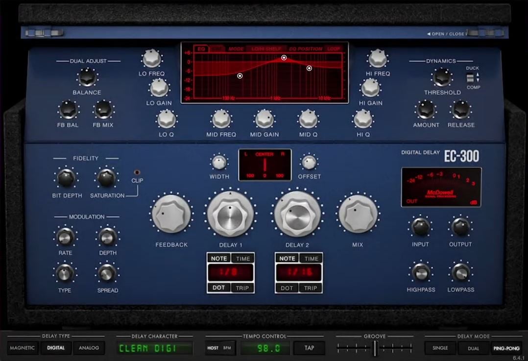 McDSP will offer the EC-300 Echo Collection ($79 value) plugin as a free download for a limited time, starting March 2nd, 2022 (UPDATE: The signup form is already working!). An iLok user account is required for activation purposes.