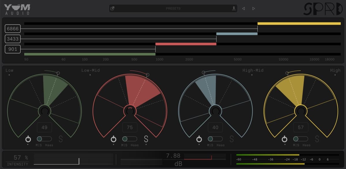 Spread ($99 standard price, $79 with discount) is a stereo processing plugin with a bit of a twist. Unlike the typical stereo imaging plugin, Spread allows you to split your audio signal between four frequency bands.
