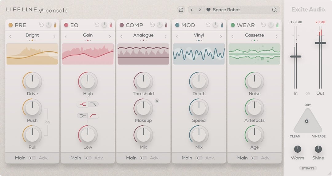 Generally, I like plugins that don’t have strict boundaries, so I like the modular approach that Excite Audio takes with their products. I also like that it’s not a direct emulation because some excellent emulations are available already, and sometimes it’s nice to start with a blank canvas.