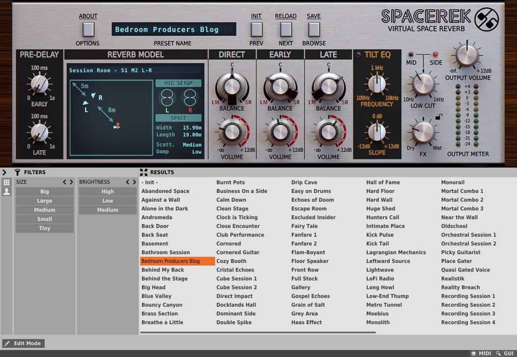 Still, even though I understand D16’s “less is more” approach, I can’t help but feel Spacerek is a mere glimpse at the potential of one monster reverb algorithm. I’m convinced that an ‘XL’ version with adjustable speakers, delay network controls, a parametric EQ, and a limiter at the end would absolutely slay!
