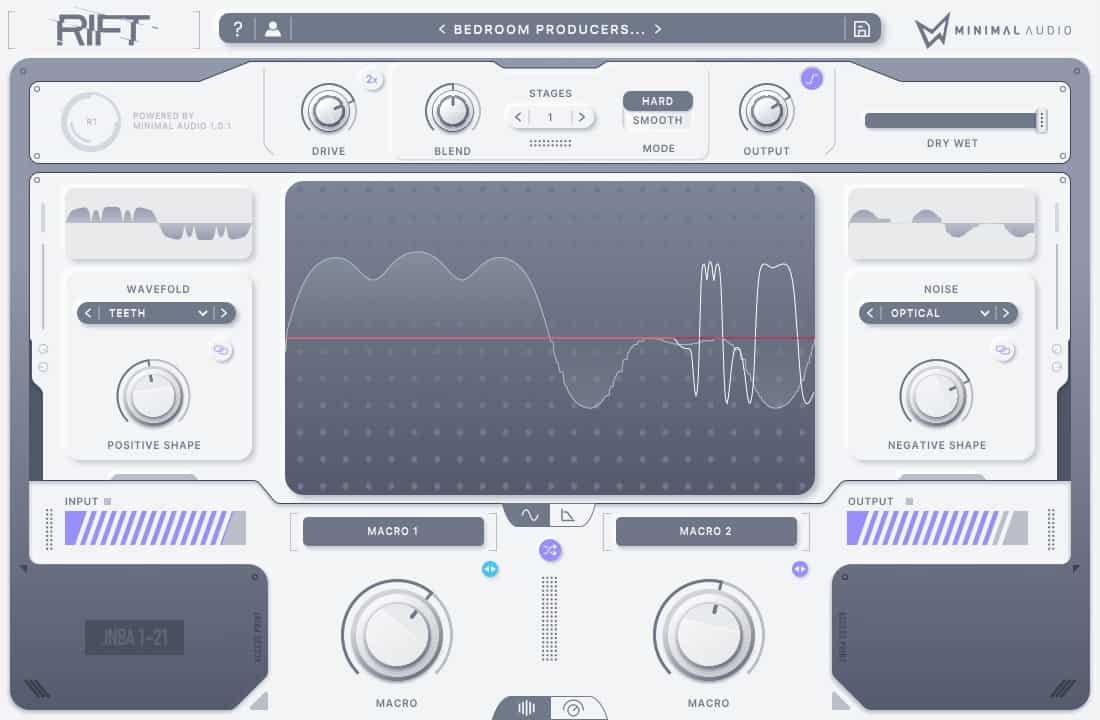 Minimal Audio describes Rift as a new type of distortion, a bi-polar processing engine, the world’s first bi-polar distortion plugin.