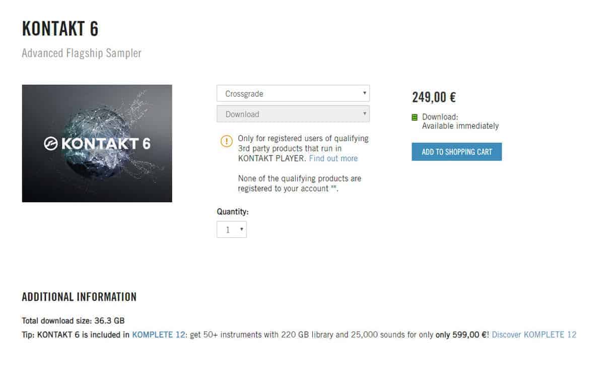 onthat is soo cool! i was just looking at purchase konktakt 6 and with this crossgrade i will pay only 125 dollars yuppie!