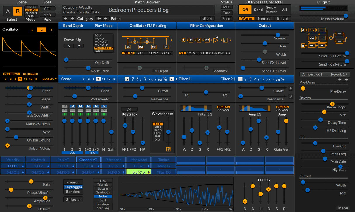 Furthermore, Tyrell N6’s feature set follows the blueprint provided by Amazona.de forum members who joined forces to create a concept for their ideal synthesizer. You read that right; Tyrell N6 was developed by Urs Heckmann, following a “dream synth” concept developed by the members of an online forum. These are incredible times for us synth geeks.