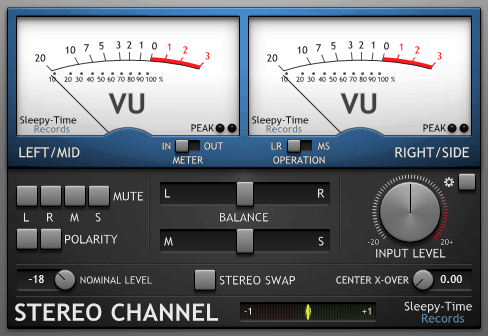 MonoChannel and StereoChannel are high-quality metering tools with basic console channel controls. Use these two freeware tools to easily achieve proper gain staging in your audio projects, with VU meter simulation, LR and MS balancing, ±24 dB gain control and stereo phase correlation metering.