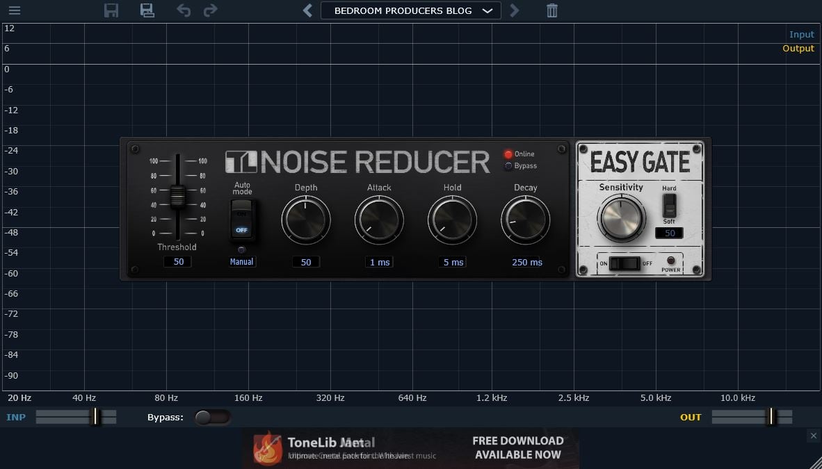 NoiseReducer is a free noise gate plugin that consists of two units; the Studio Rack Unit and the EasyGate Unit. Both units are incredibly easy to use and offer different ways to deal with unwanted noise.