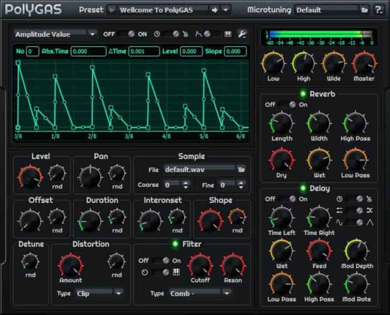 A very well packaged synth, PolyGAS comes with 32-note polyphony, 18 envelopes, 11 filter types, and 11 distortion modes.