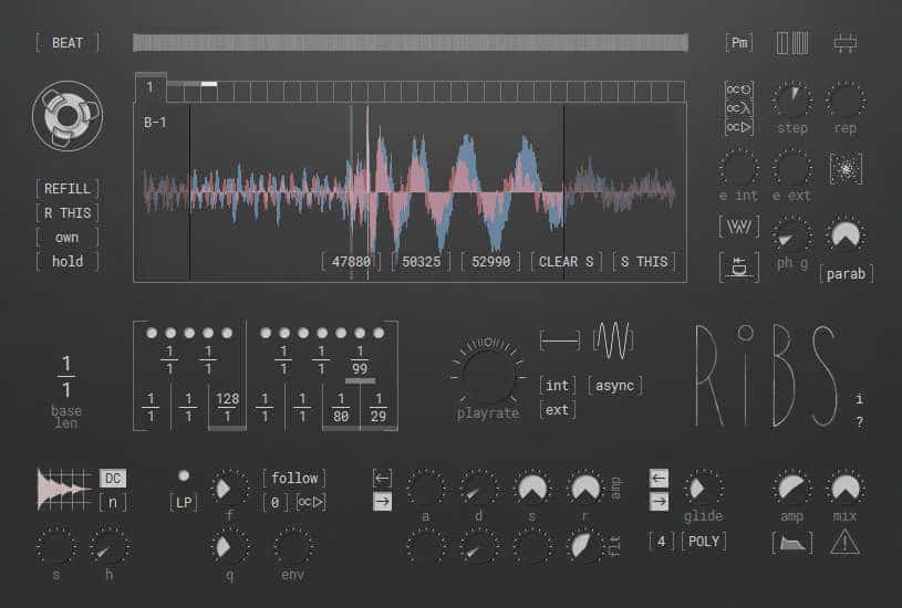 You can use Ribs as either a polyphonic or monophonic granular synth. Additionally, you can route audio into the Ribs buffer to create unique granular textures.