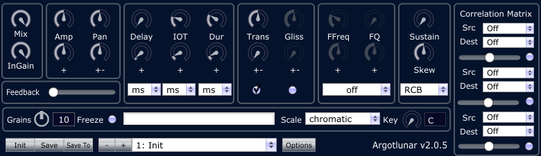 Argotlunar chops your incoming audio into grains and lets you control the randomizer, amplitude, envelope, panning, pitch controls, and even glissando.