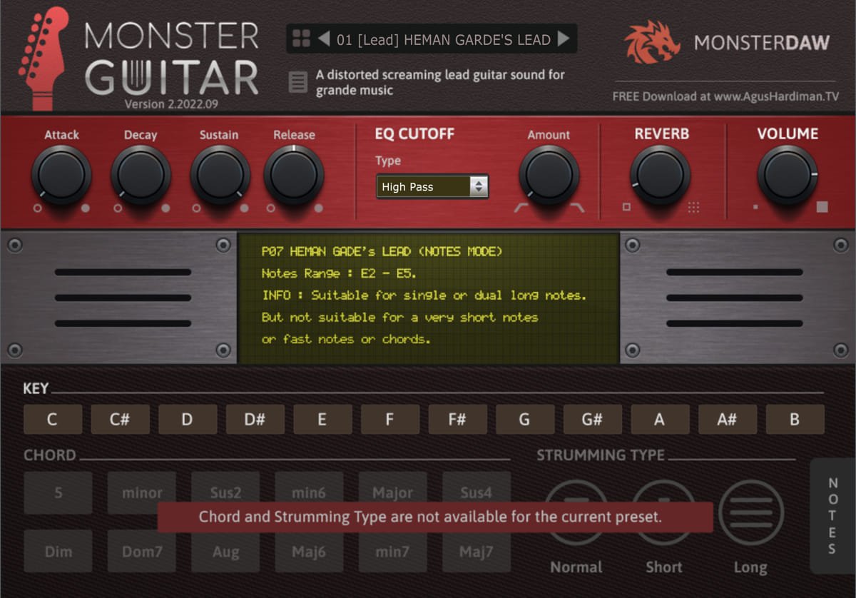 Agus Hardiman, the creator of Monster Guitar, claims that this plugin “is not meant to replace a real guitarist, but rather to help everybody so abstract ideas become more fixed.”