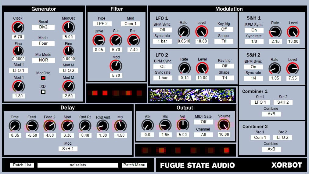 Fugue State Audio offers XORbot, a freeware noise box synthesizer in VST plugin format for Windows.